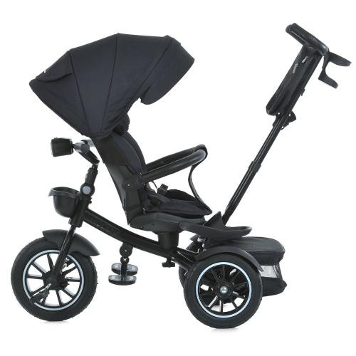 Трьохколісний велосипед EL Camino ME 1162-1 VECTOR має сталеву раму, поворотне сидіння, дуже м'який знімний чохол, велику подушку-піголівкик, захисний бампер з накладкою з еко-шкіри і глибокий регульований капюшон. Колеса з поліуретану на підшипн...