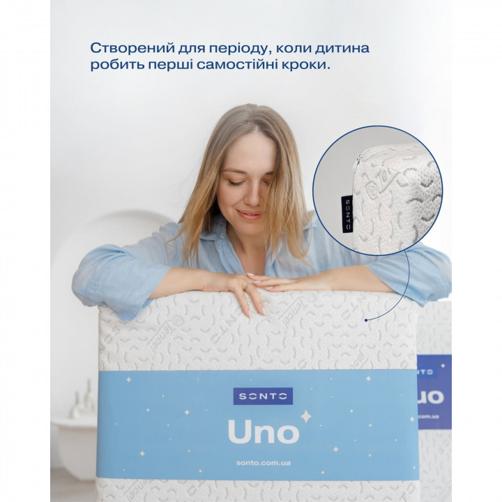 Новий односторонній ортопедичний матрац Sonto UNO спеціально створений для малюків, які починають робити свої перші кроки. Після року малюки починають активно пізнавати світ: бігають, стрибають, падають, піднімаються. Тому їм потрібен якісний відпочинок та сон.