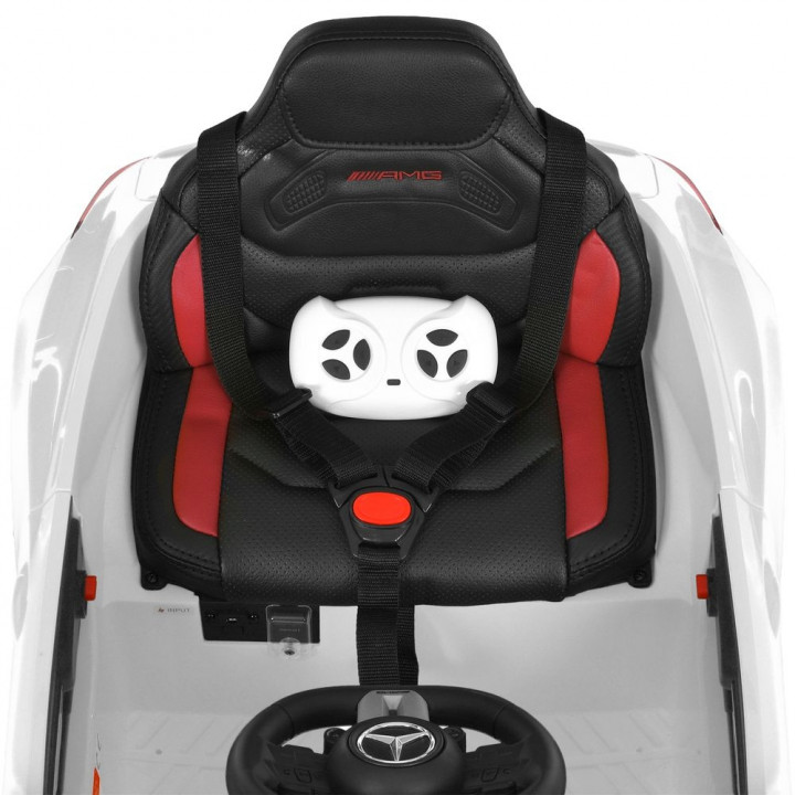 Дитячий електромобіль Mercedes Bambi M 5107 обладнаний одним сидінням із еко шкіри і 5 точковим ременем безпеки. Передбачена можливість підключення Bluetooth, а також є USB, MP3, AUX, SD. Світло передніх і задніх фар, музика і сигнал на кермі д...