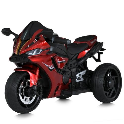 Дитячий електричний мотоцикл Bambi M 5036 оснащений одним посадковим місцем зі шкіряним сидінням, а також кермом з приладовою панеллю, дзеркалами заднього виду, лобовим склом, колесами з Eva-матеріалу. На приладовій панелі є MP3, AUX і USB -Роз'є...