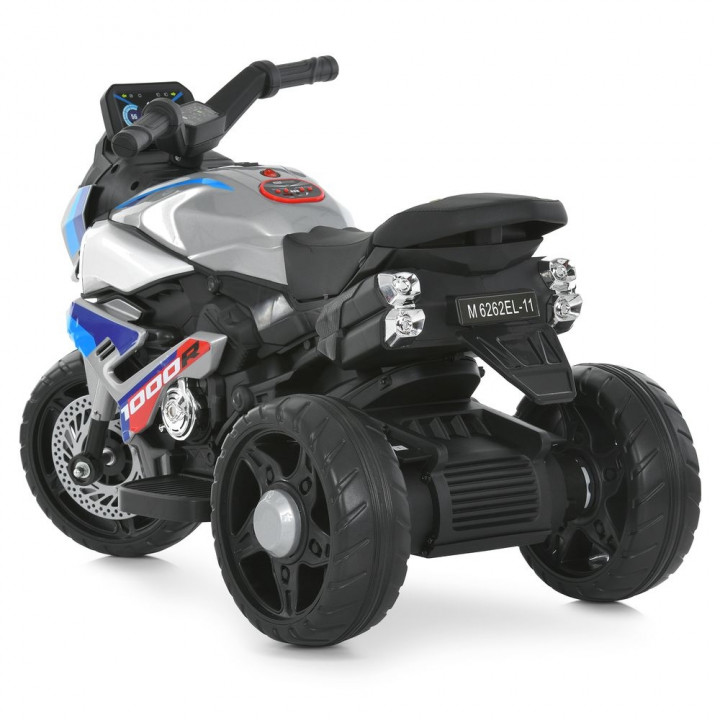 Дитячий електромотоцикл Bambi M 5036 оснащений одним посадковим місцем зі шкіряним сидінням, а також кермом з приладовою панеллю, дзеркалами заднього виду, лобовим склом, колесами з Eva-матеріалу. На приладовій панелі є MP3, AUX і USB -Роз'єм. Св...