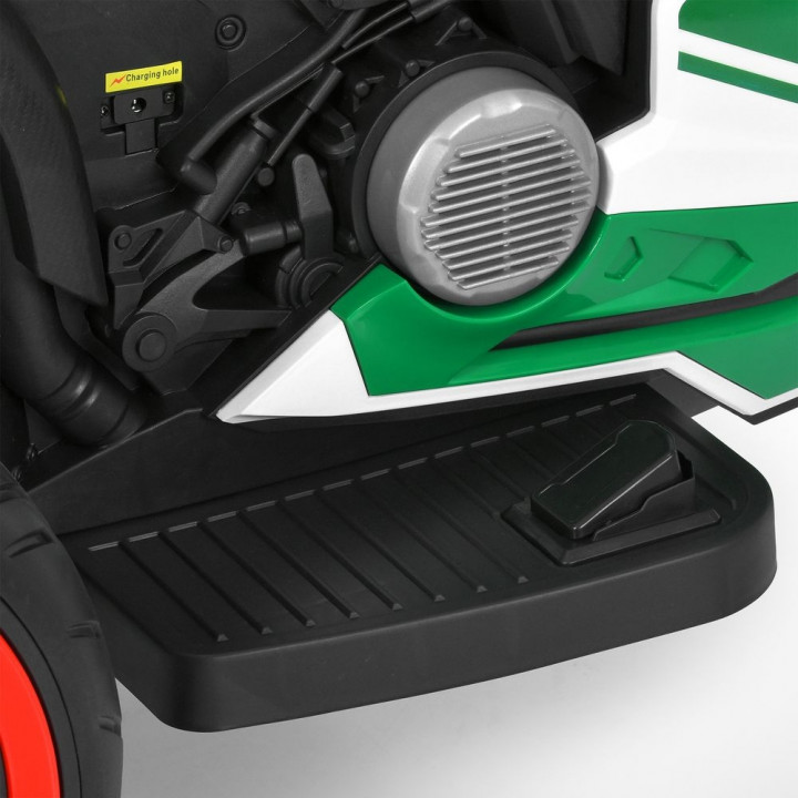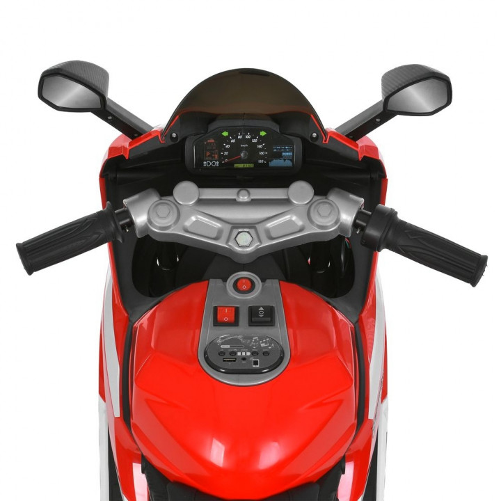 Дитячий електричний мотоцикл Bambi M 5036 оснащений одним посадковим місцем зі шкіряним сидінням, а також кермом з приладовою панеллю, дзеркалами заднього виду, лобовим склом, колесами з Eva-матеріалу. На приладовій панелі є MP3, AUX і USB -Роз'є...