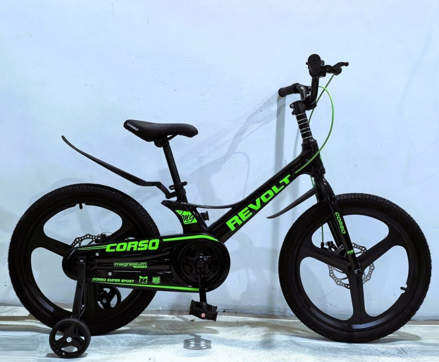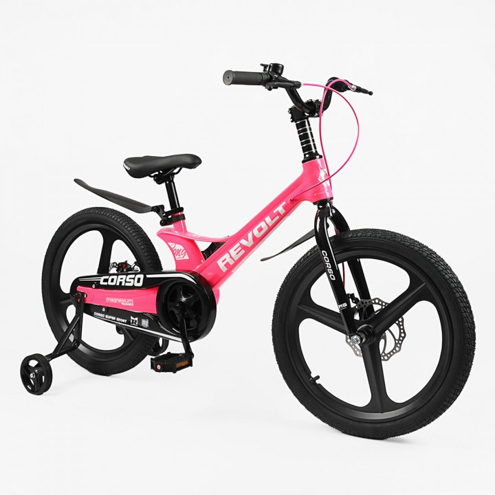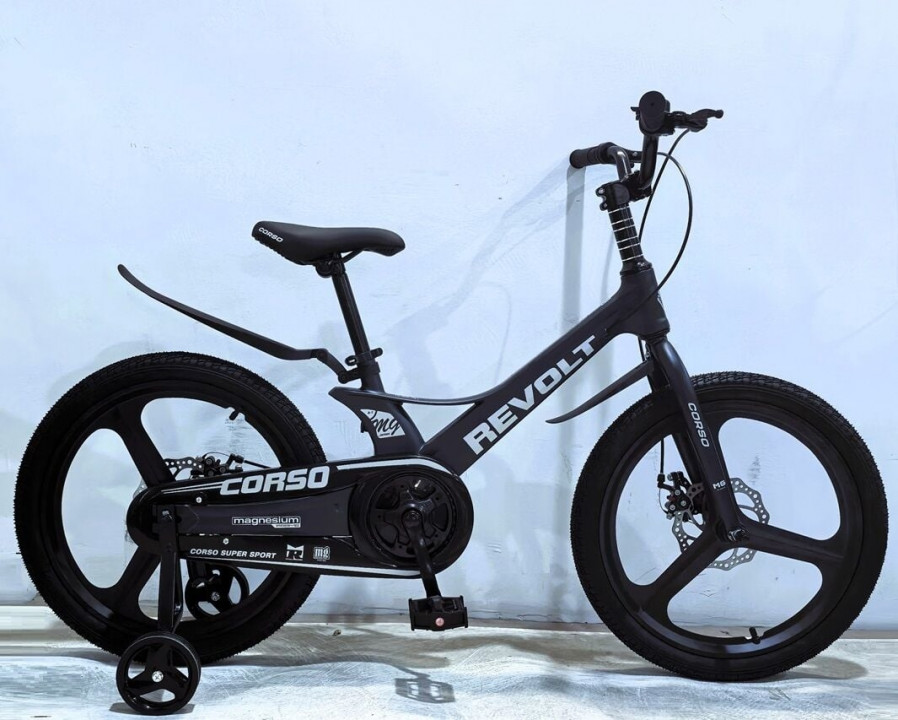 Дитячий велосипед 18" дюймів 2-х колісний Corso Revolt за рахунок магнієвої рами, магнієвих дисків, магнієвої вилки має дуже легку вагу, в порівнянні з велосипедами на сталевій рамі, різниця приблизно становить від 3 до 4 кілограмів залежно від ...