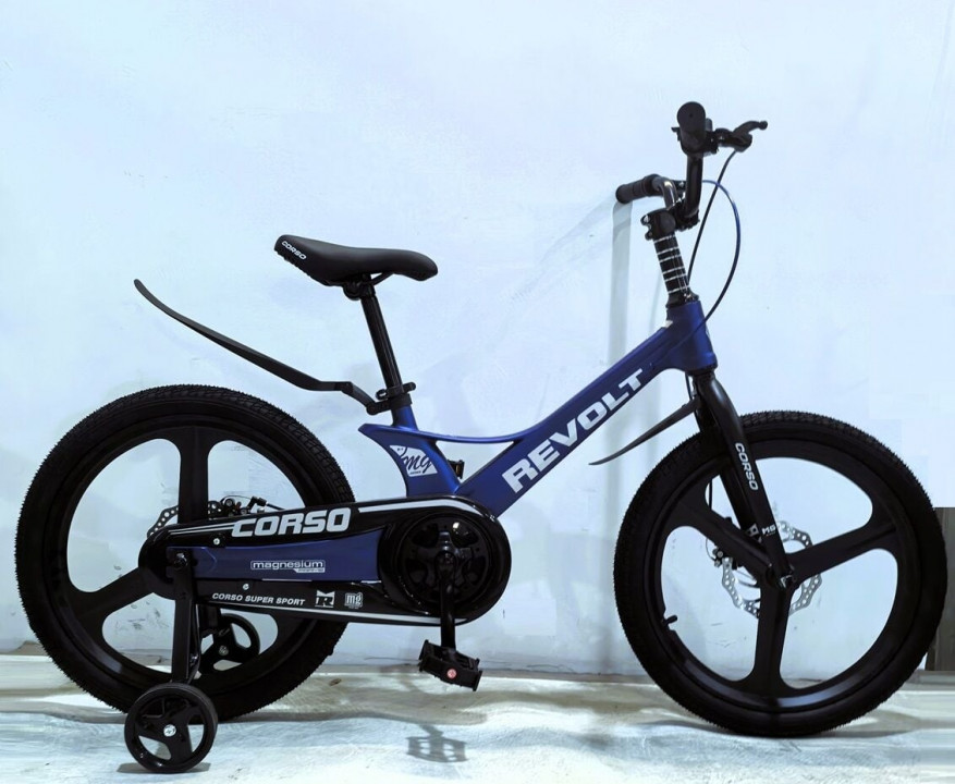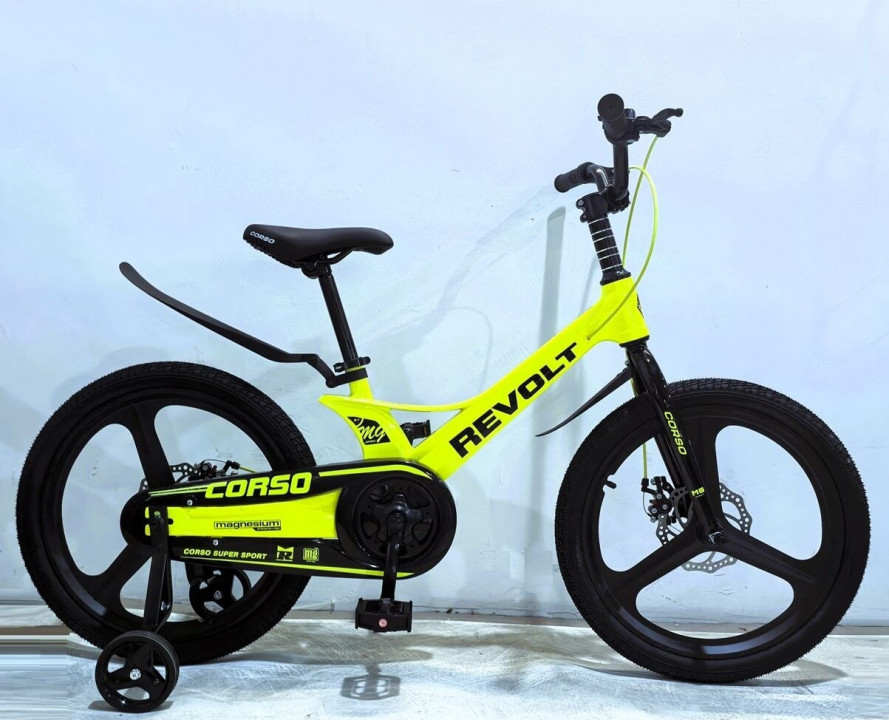 Дитячий велосипед 16" дюймів 2-х колісний Corso Revolt за рахунок магнієвої рами, магнієвих дисків, магнієвої вилки має дуже легку вагу, в порівнянні з велосипедами на сталевій рамі, різниця приблизно становить від 3 до 4 кілограмів залежно від ...