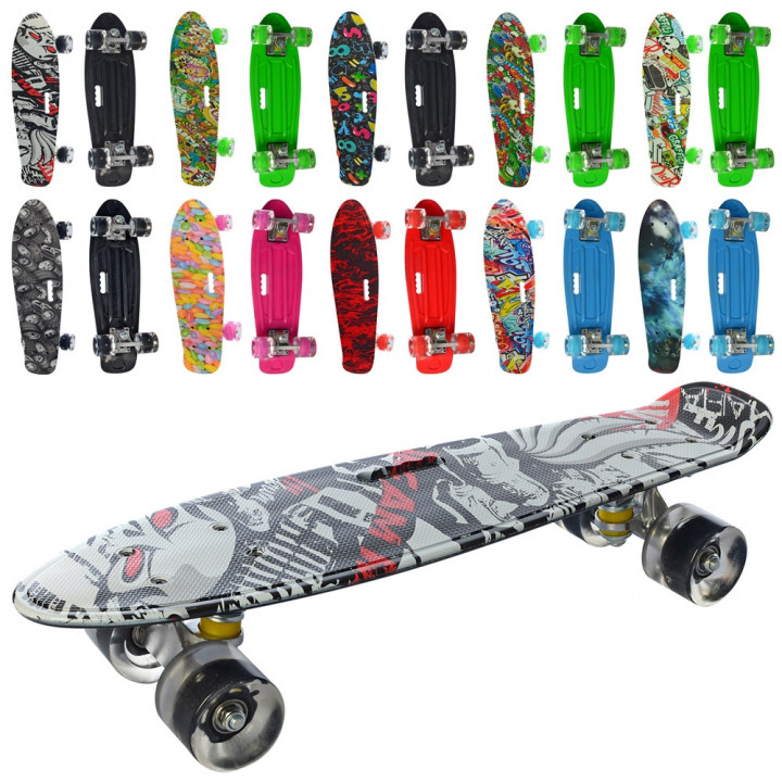 Дитячий скейт Profi МS 0749-9 - це ідеальний вибір для дітей та підлітків, які тільки починають кататись. Легкий та компактний, він забезпечує комфортне і безпечне катання. Світні колеса додають драйву і роблять прогулянки особливими навіть у сутінка...