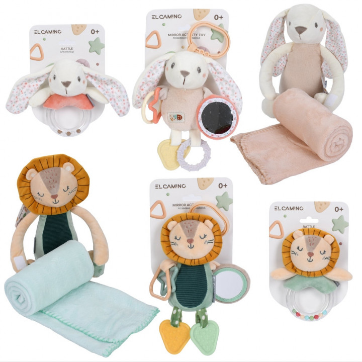 Набір іграшок-брязкалець EL CAMINO ME 1218 - ідеальний набір для перших місяців життя малюка, який поєднує затишок, розвиток і безпеку. Набір із трьох предметів стане чудовим подарунком для новонародженого, baby shower або хрестин.